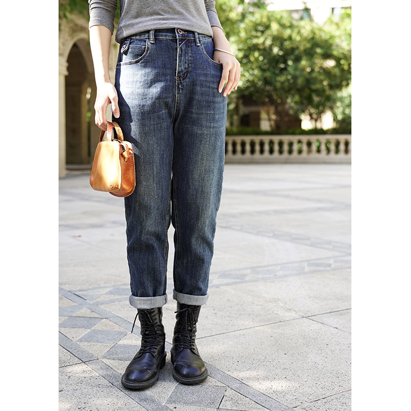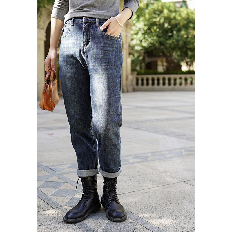 艾绘馆春秋季蓝色显瘦高腰牛仔裤女休闲修身百搭直筒裤高腰小脚裤