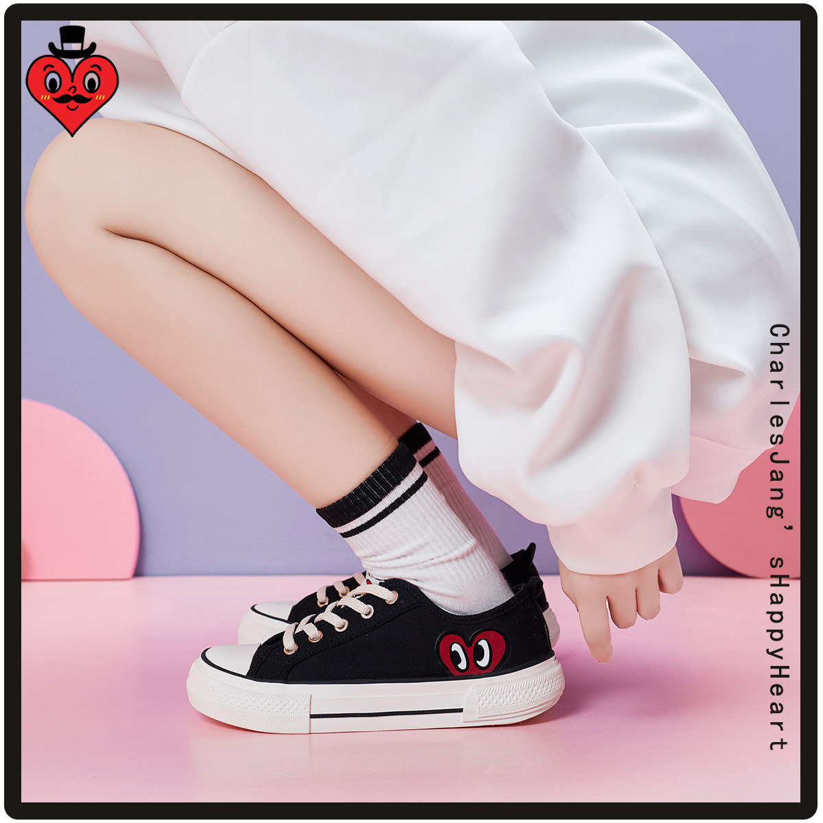 CHARLES/查尔斯桃心春季女款低帮女帆布鞋休闲时尚透气舒适板鞋
