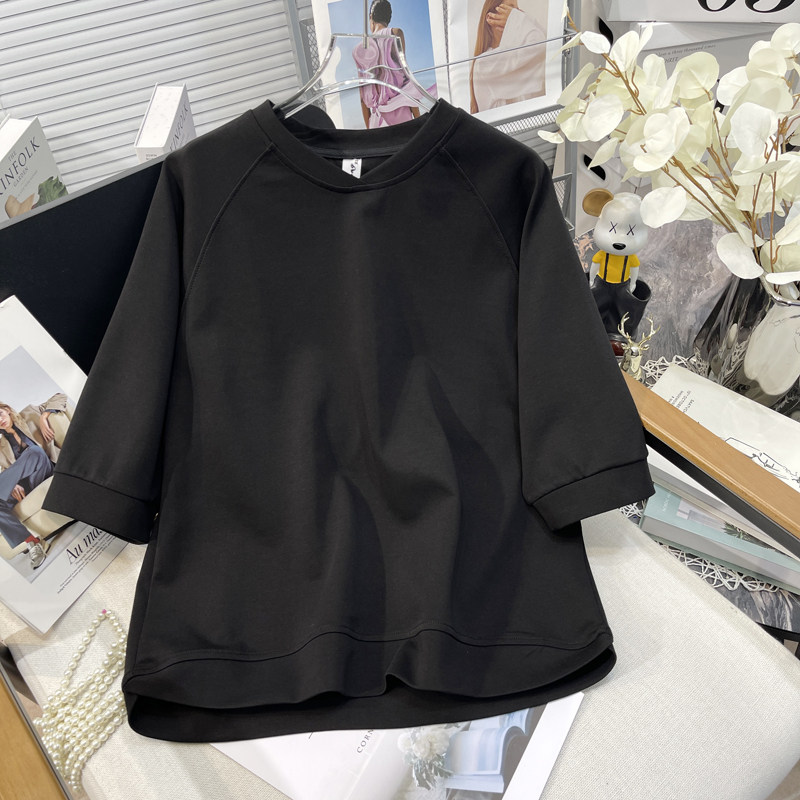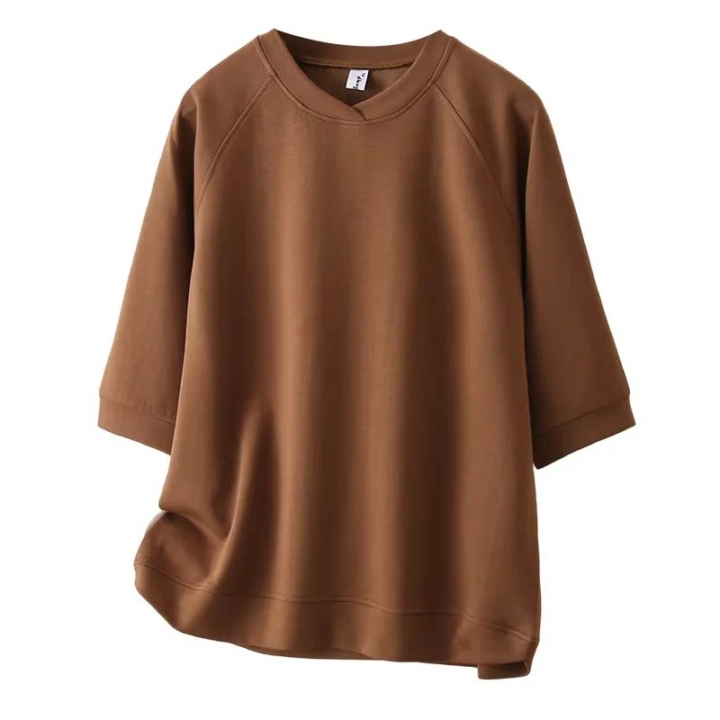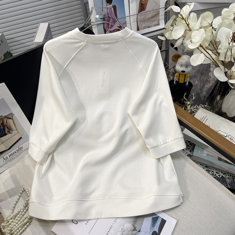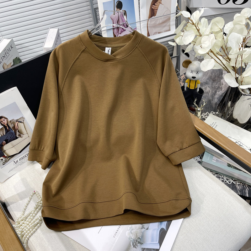 胡子叔大码女装2025夏季新款设计感v领中袖卫衣纯色简约显瘦上衣