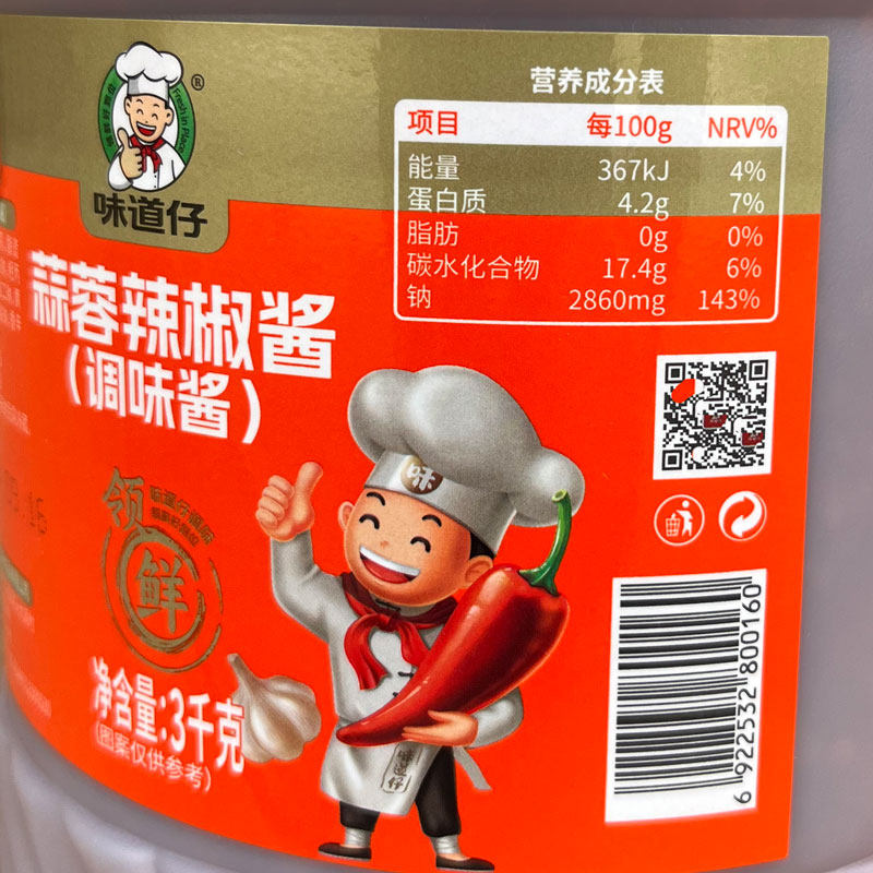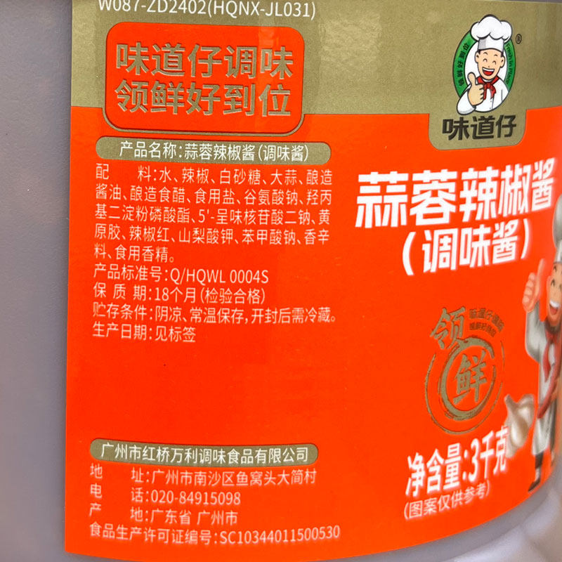 味道仔金装蒜蓉辣椒酱3千克