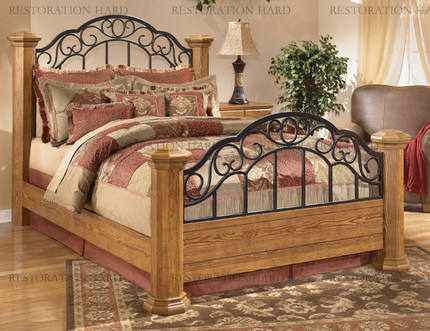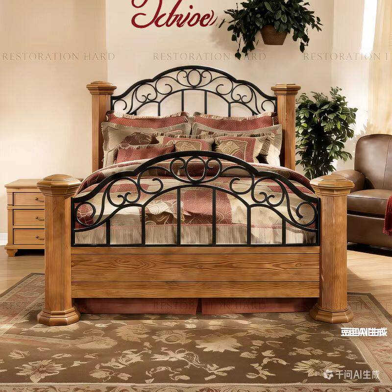 美式乡村樱桃木双人床铁