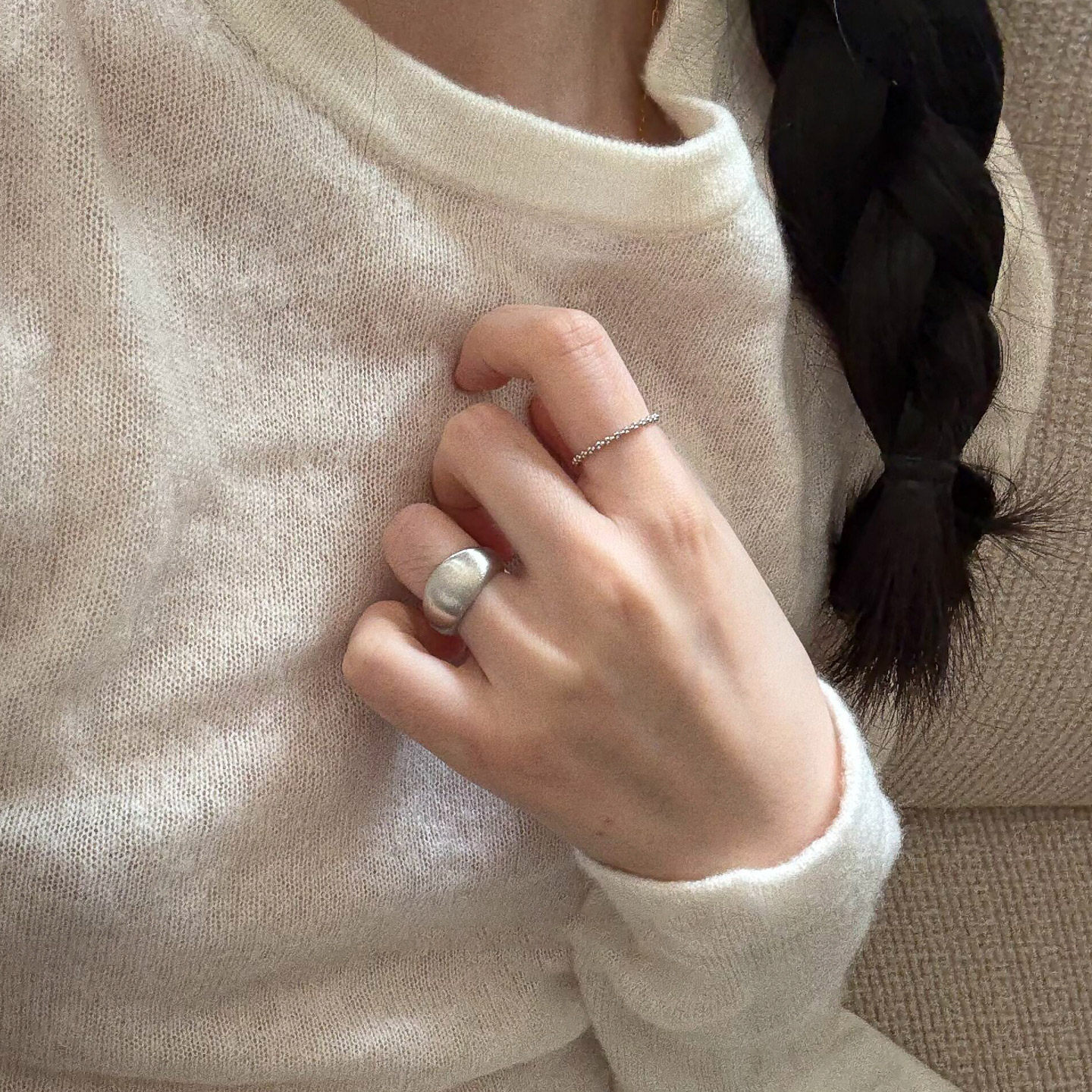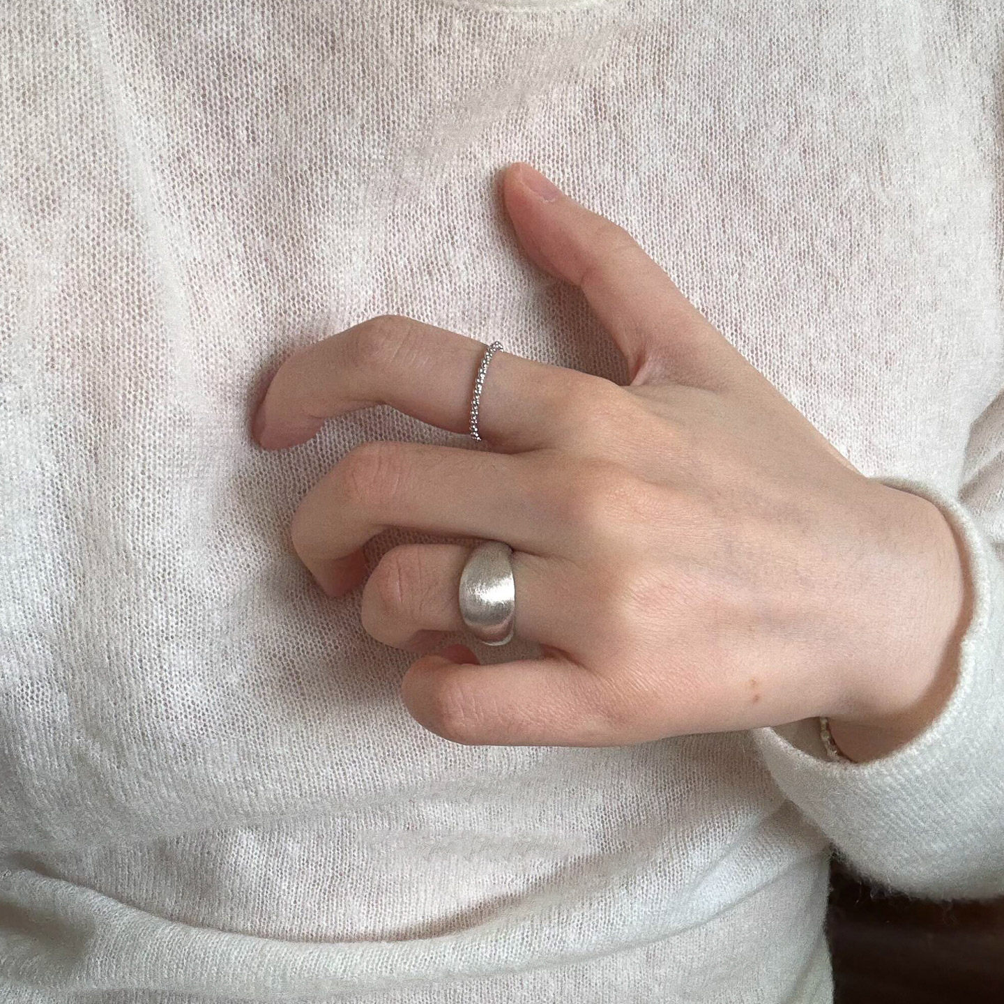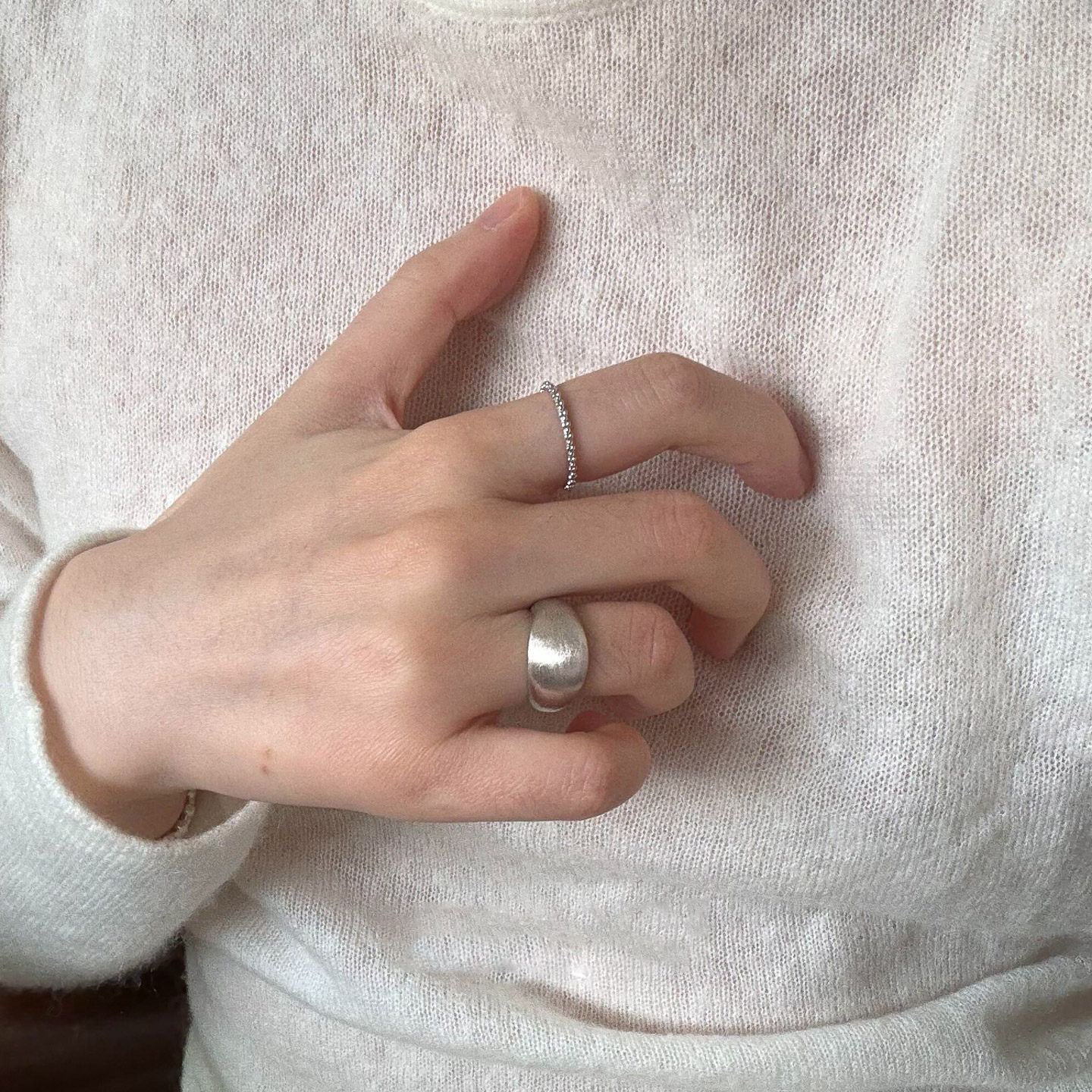 S925纯银哑光拉丝素圈戒指女小众设计冷淡风双层食指戒轻奢高级感