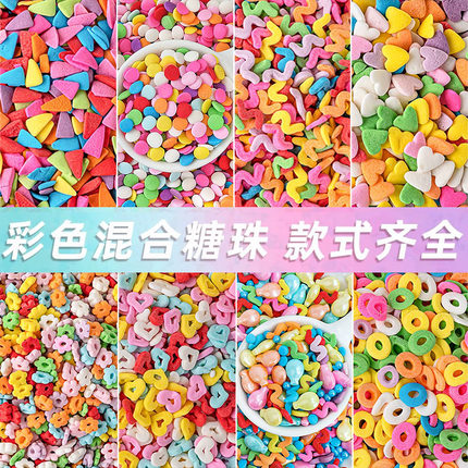 卡通彩色装饰糖珠儿童节蛋糕圆形彩带花朵爱心糖烘焙甜品奶油点缀