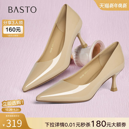 百思图2025秋新款一脚蹬裸色细跟高跟鞋尖头浅口单鞋女鞋F5139CQ5