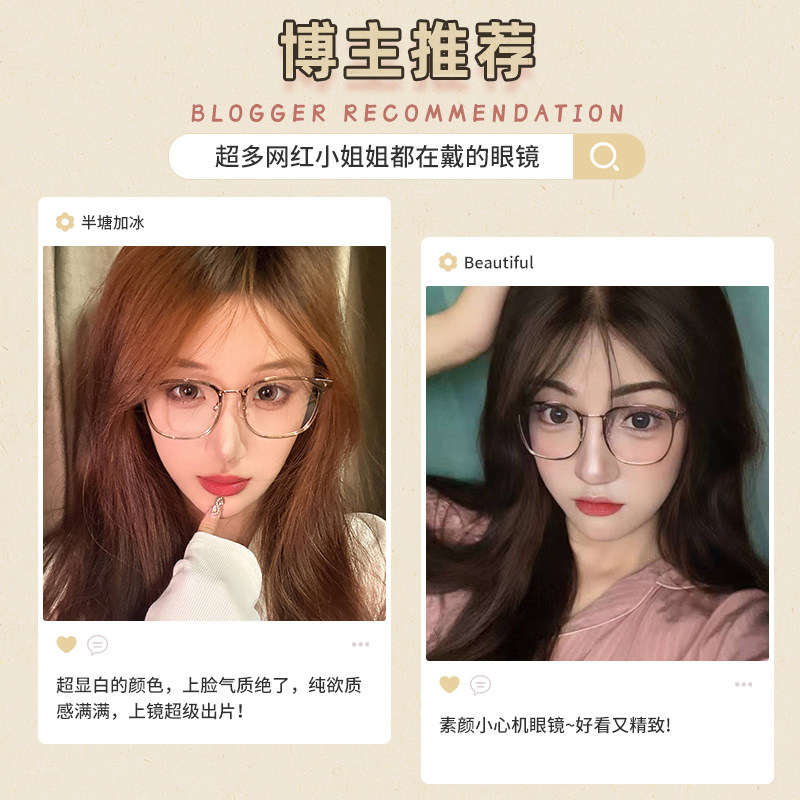 方圆脸专用大框眼镜近视可配度数女素颜显白超轻金属边眼睛框镜架