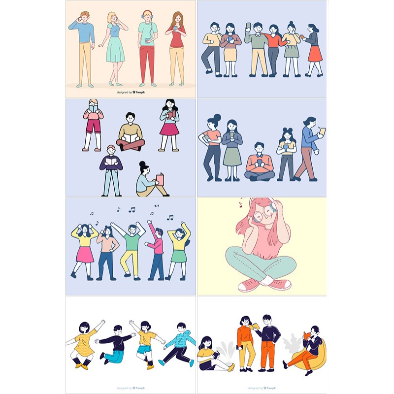卡通插画小人配景素材建筑园林景观室内后期人物AI矢量图效果图