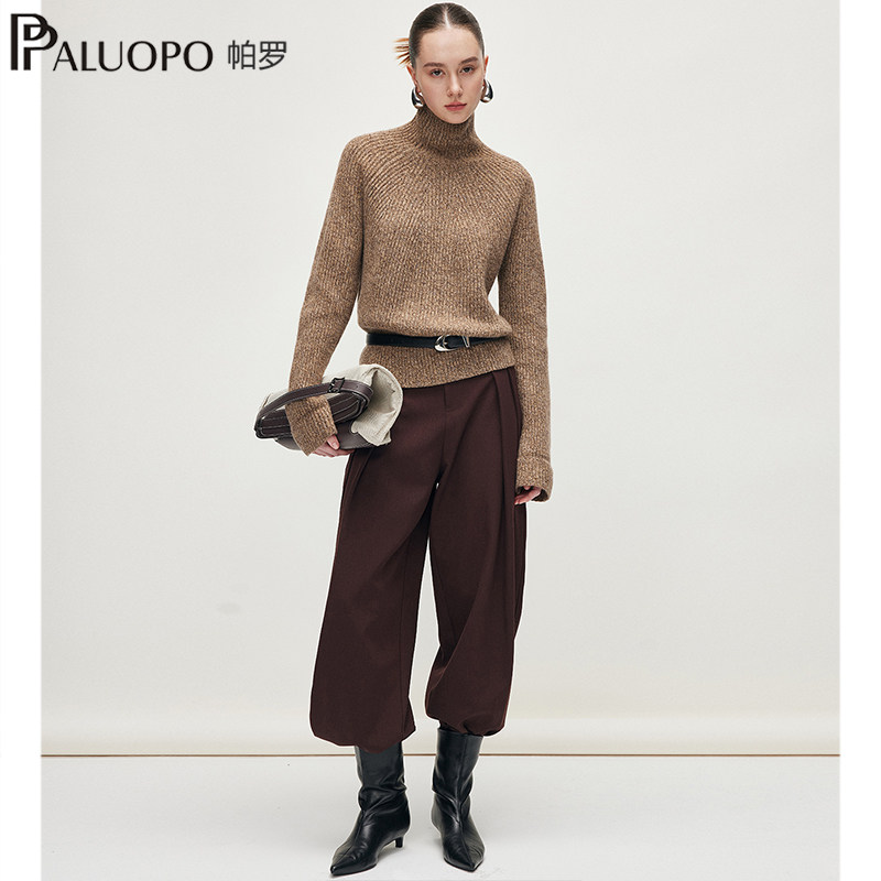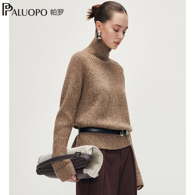 帕罗【商场同款RED系列】高领纯山羊绒衫肌理提花针织花纱女毛衣
