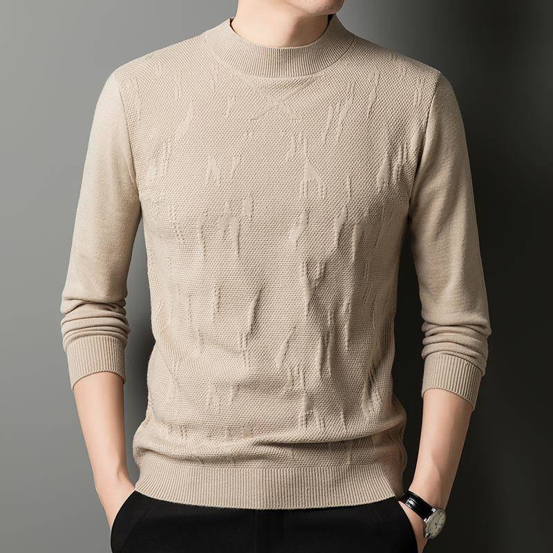 冬男士针织毛衣内搭衫新款提花半高领男不起球中领打底底衫1001kz