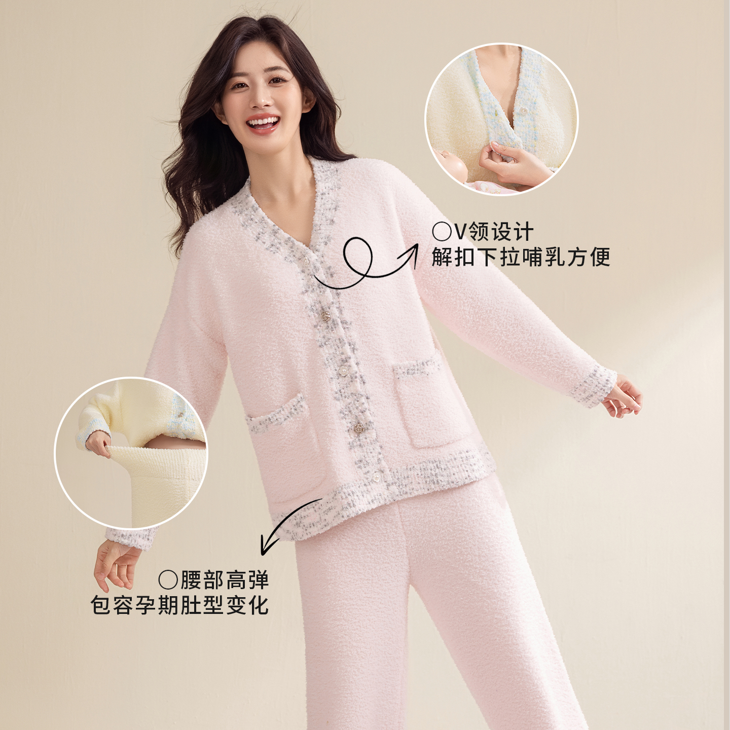 宫熏秋冬孕妇加厚加厚月子服保暖半边绒哺乳开衫产后喂奶睡衣家居