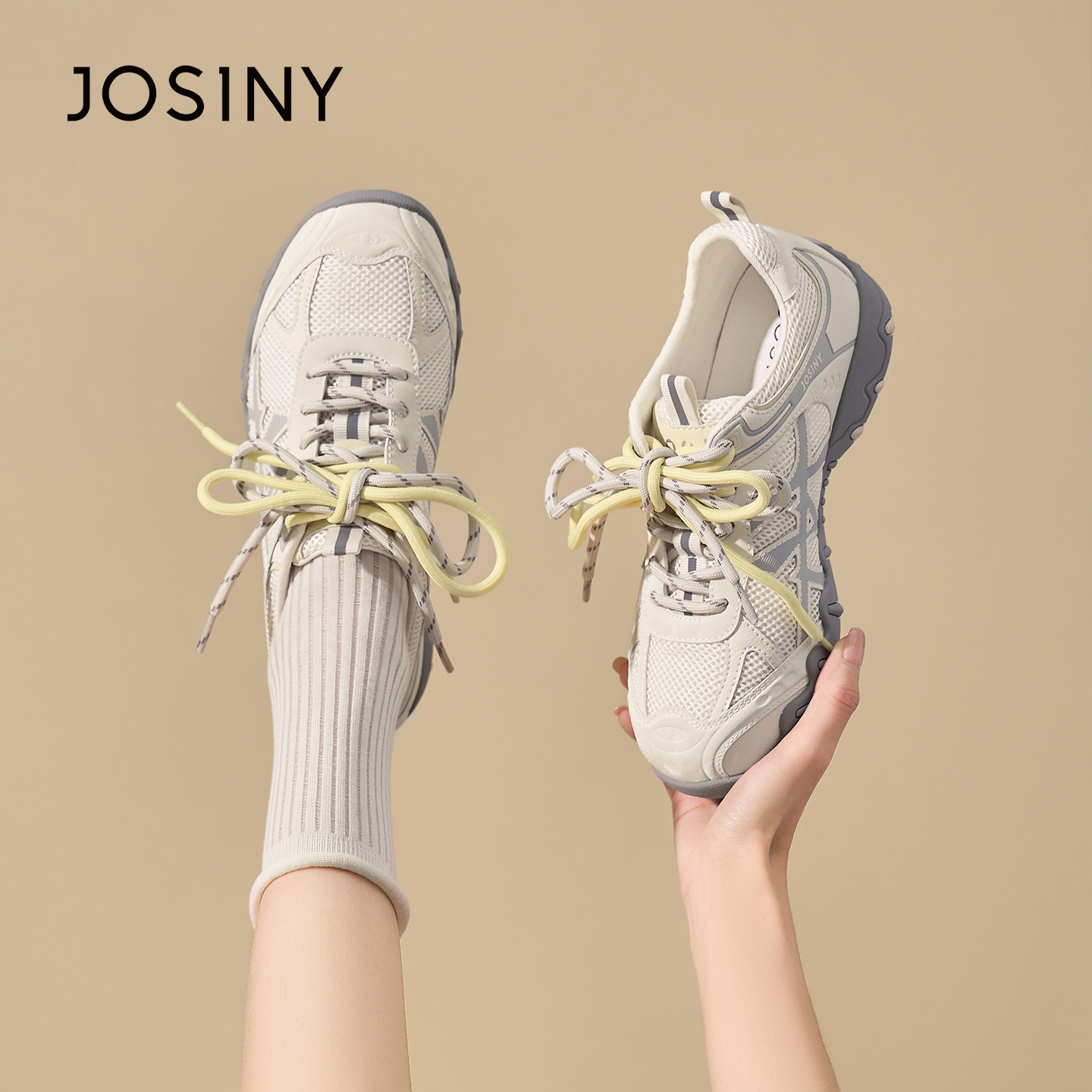 卓诗尼厚底德训鞋女2025年春季新款双系带休闲鞋内增高百搭小白鞋