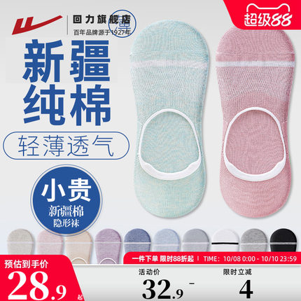 回力袜子女士秋季薄款短袜纯棉防臭抑菌运动袜网眼透气吸汗船袜女