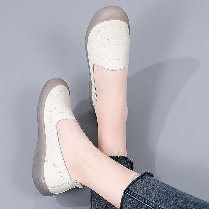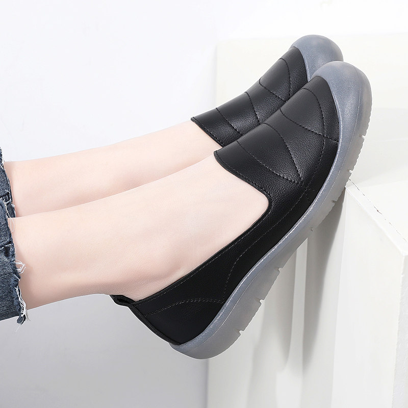 牛筋软底妈妈鞋春秋驾车皮鞋一脚蹬平底鞋子女士四季单鞋乐福鞋女