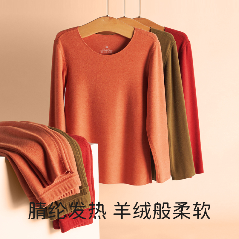 儿童抗菌保暖内衣套装无痕男童德绒发热加绒厚中大童女秋衣秋裤冬