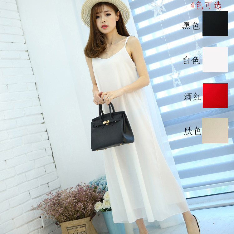 春夏打底新款欧美大码宽松吊带裙打底裙双层雪纺连衣裙内搭中长裙
