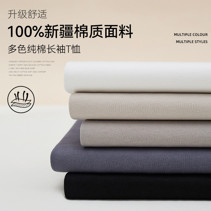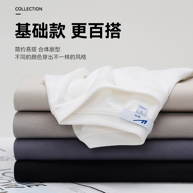 回力重磅纯棉长袖男t恤春秋新款简约基础打底衫男士宽松内搭上衣F