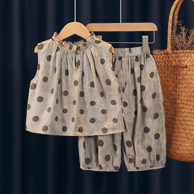 女童夏套装2025新款小女孩洋气时髦背心女宝宝纯棉麻休闲两件套装