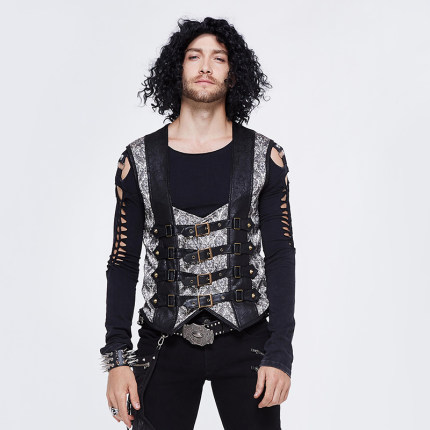 哥特朋克歌德的男装提花拼接背心马甲舞台表演万圣节服饰马夹上衣
