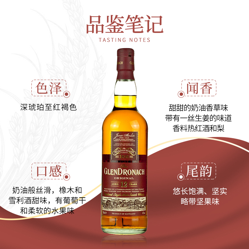 【自营】Glendronach格兰多纳12年单一麦芽苏格兰威士忌进口洋酒