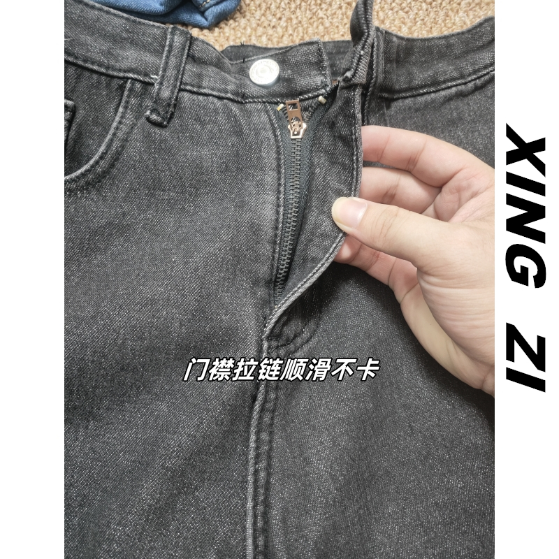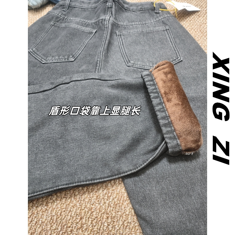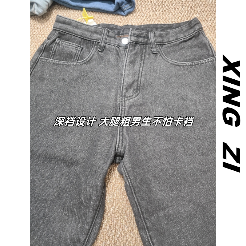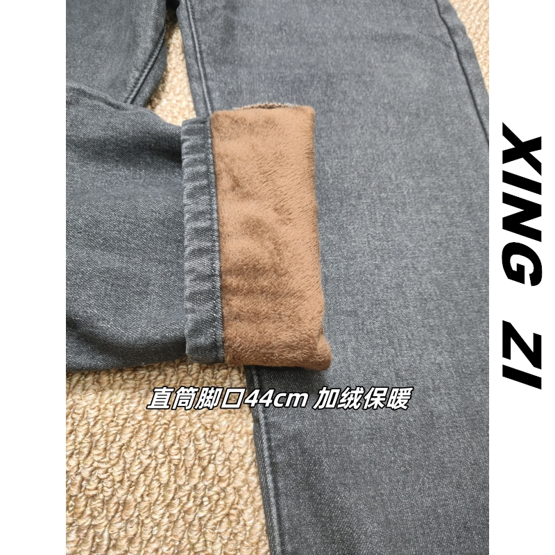 美式直筒加绒牛仔裤男款秋冬季高街潮流复古宽松休闲百搭九分裤男
