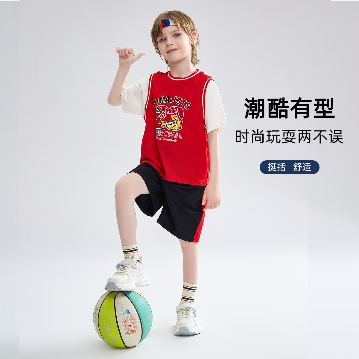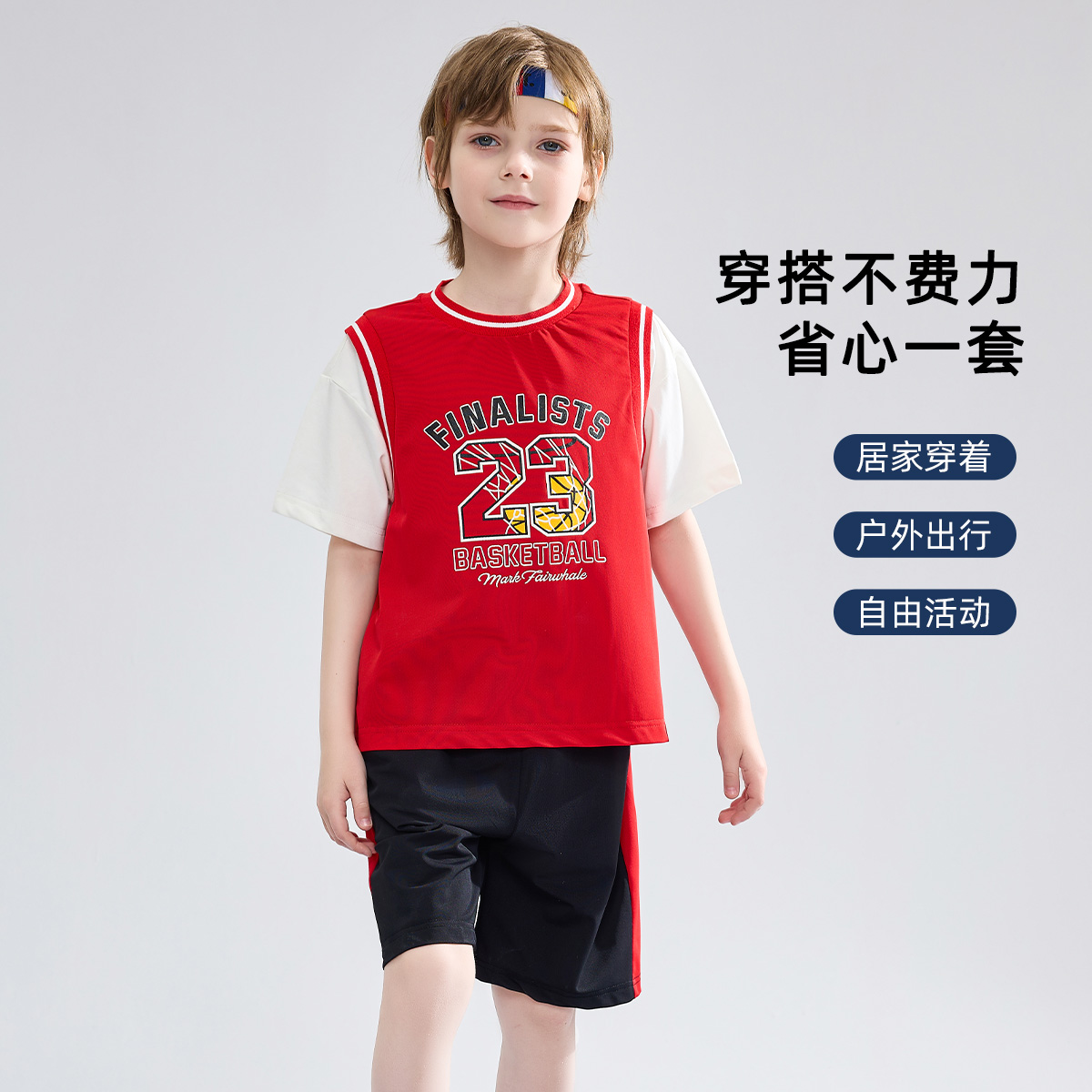 【特惠】马克华菲男童短袖套装春夏蓝球运动风童装t恤短裤2件套