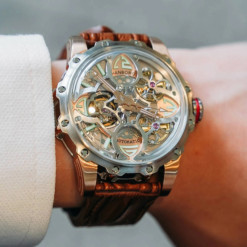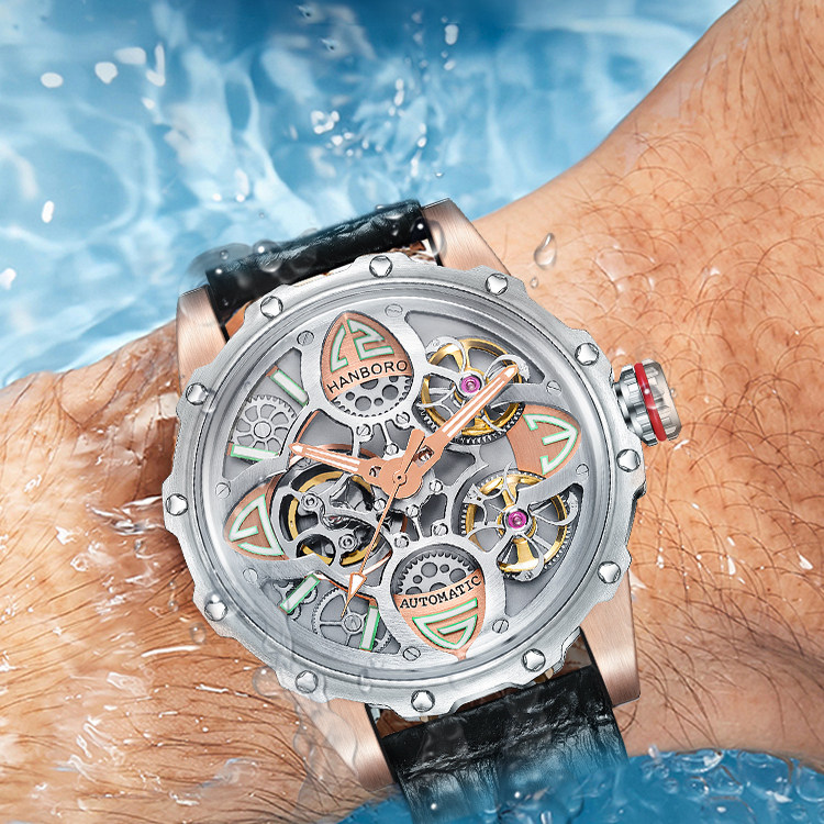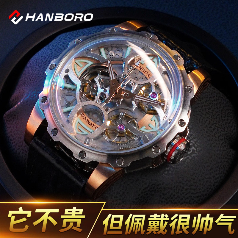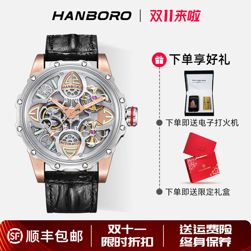 衡宝罗钢王表自动机械表男士手表四叶草商务镂空大表盘送男生礼物