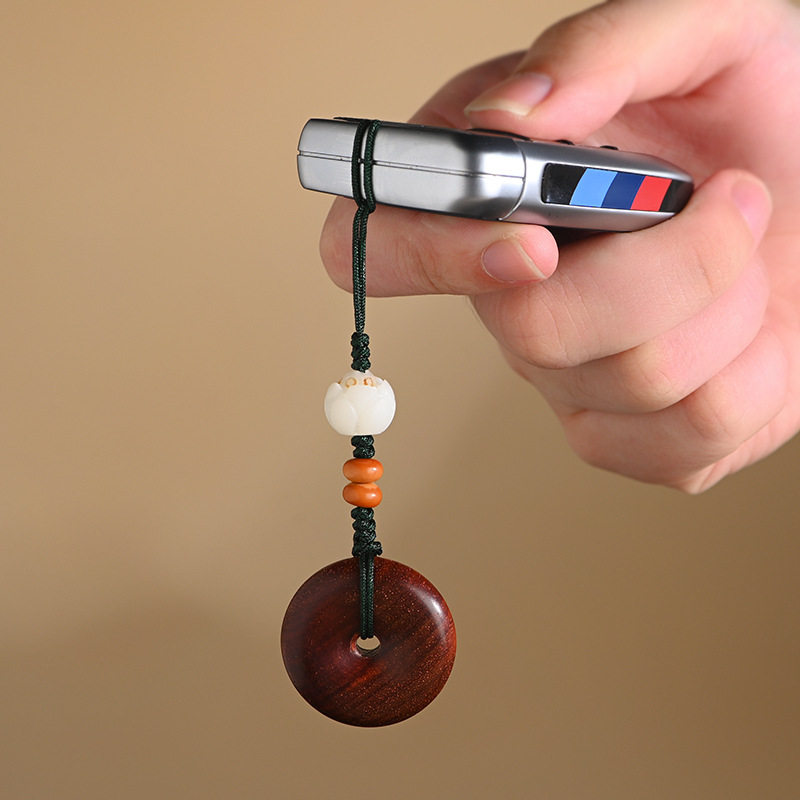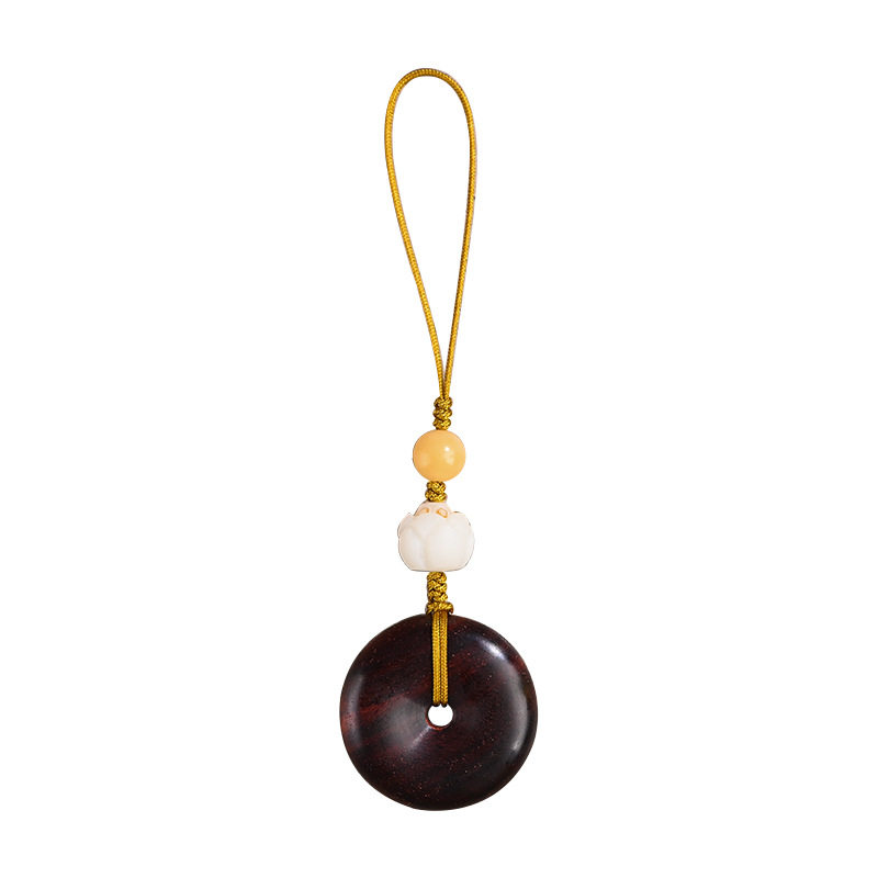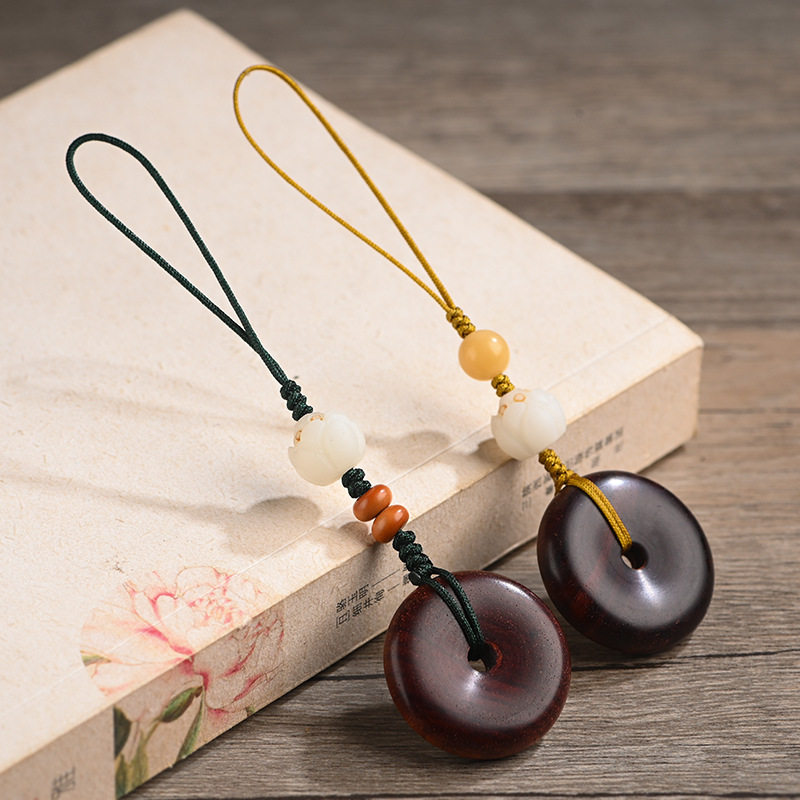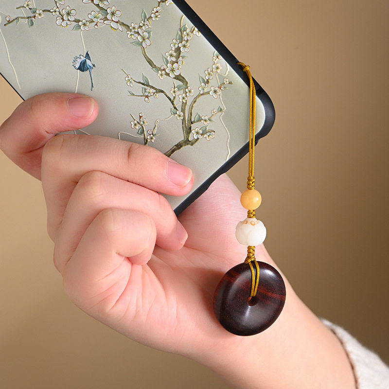 小叶紫檀平安扣手机链挂件创意复古中国风钥匙挂绳男女情侣款挂饰