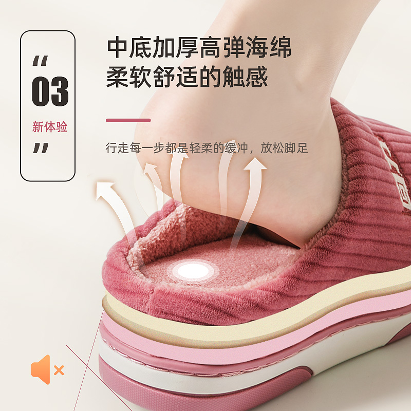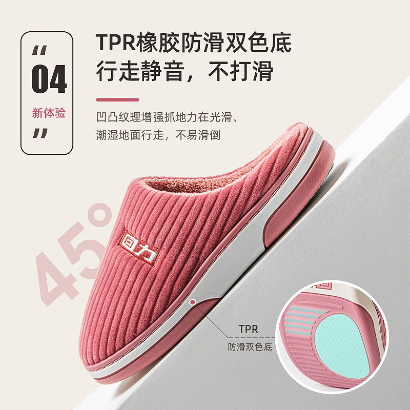 回力棉拖鞋男款秋冬季室内居家用月子保暖防滑家居毛绒厚底拖鞋女