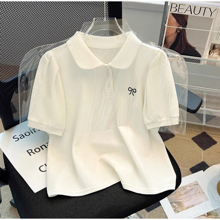 刺绣polo领短袖t恤女2025夏季新款正肩小个子宽松显瘦体恤衫上衣