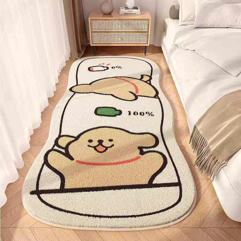 卧室床边毯线条小狗长条地毯可爱卡通细沙羊绒家居沙发地毯飘窗垫