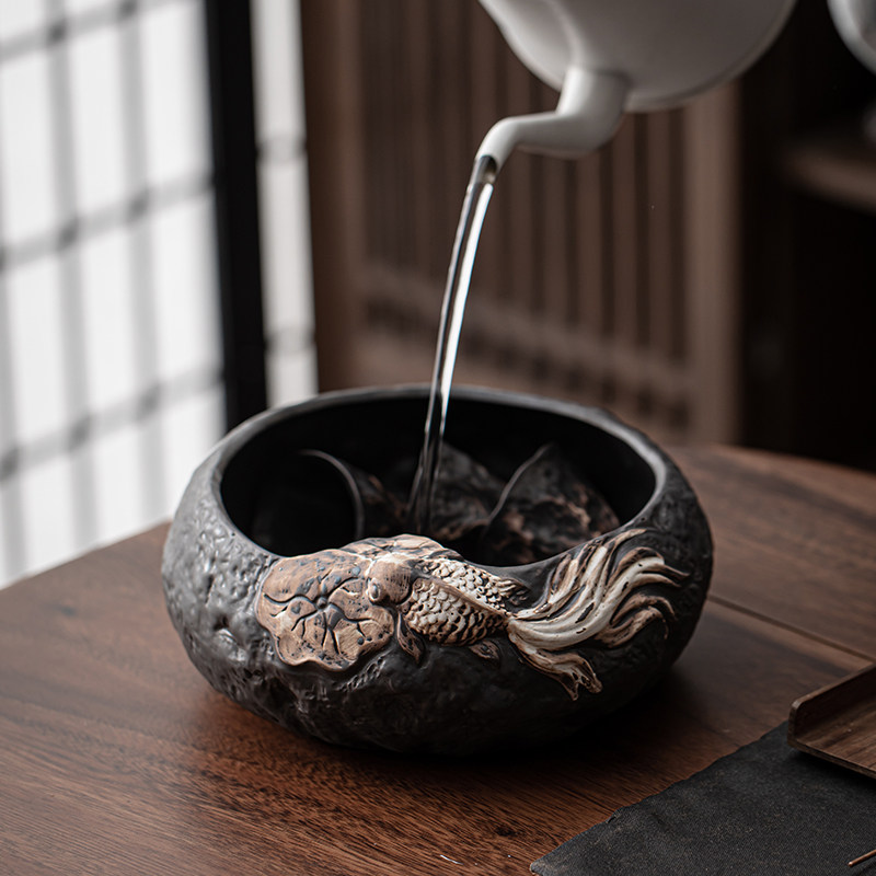 蕴华堂 侘寂风黑陶粉引茶洗中式陶瓷手工家用大号建水废水茶渣缸