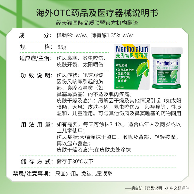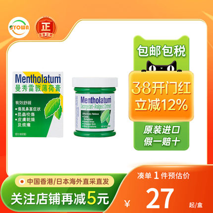 香港版曼秀雷敦复方薄荷膏85g蚊叮虫咬止痒干燥皲裂鼻塞提神止痒