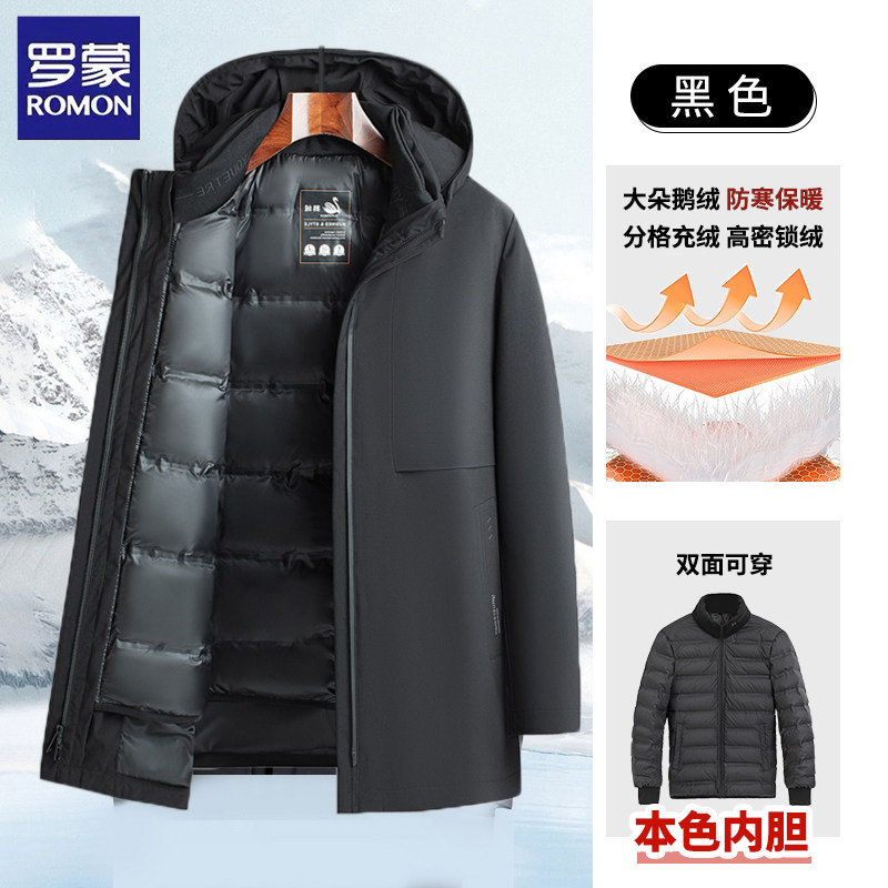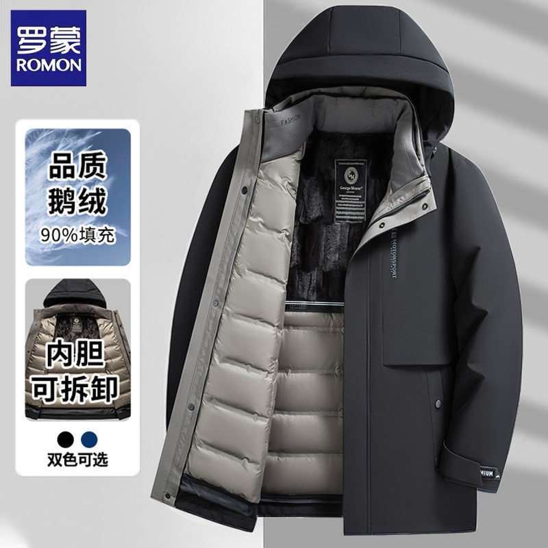 罗蒙90白鹅绒男士羽绒服男款冬季2026新款保暖加厚可脱卸内胆外套