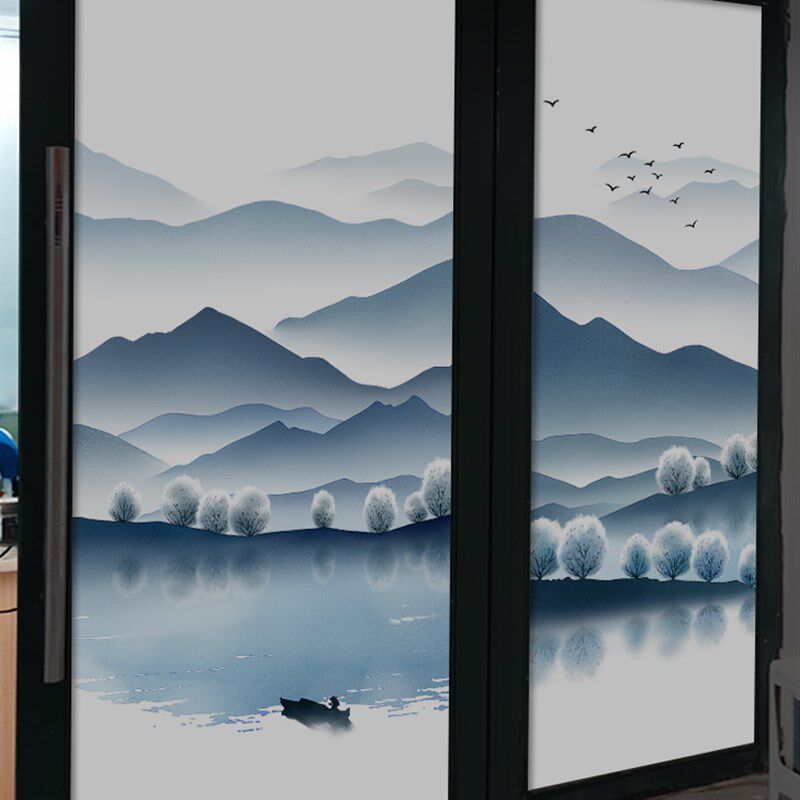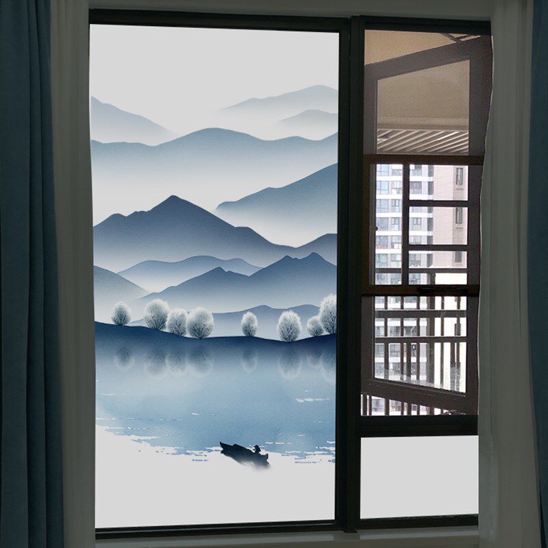 新中式窗贴玻璃贴纸静电贴膜全遮光白底膜遮阳型太阳膜隔热窗户纸