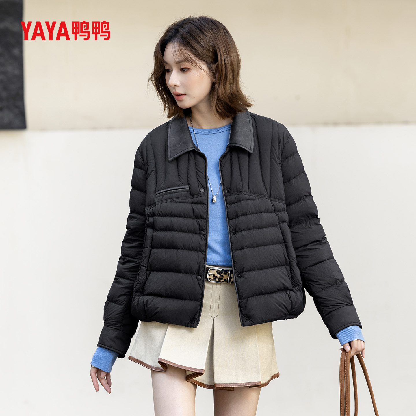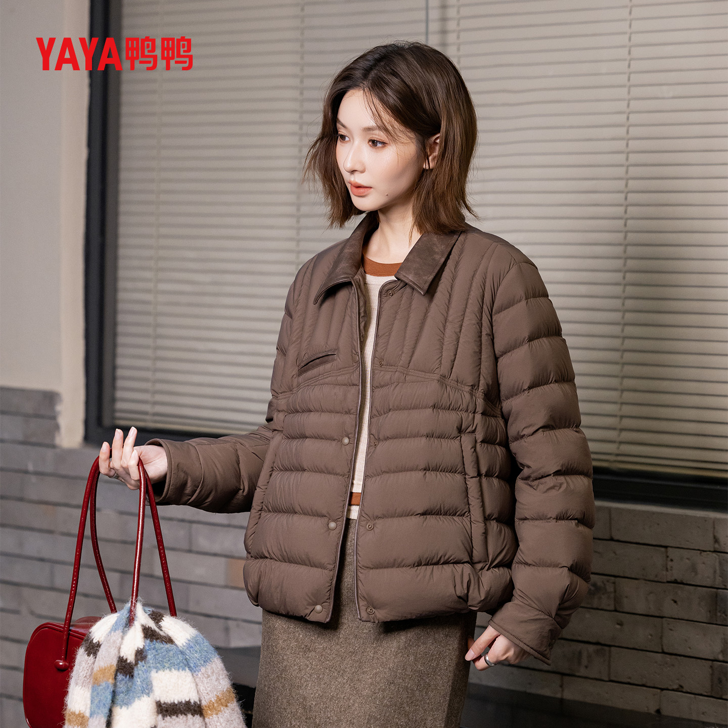 YAYA鸭鸭2025年秋冬季新款排骨羽绒服轻薄短款女士POLO领保暖外套