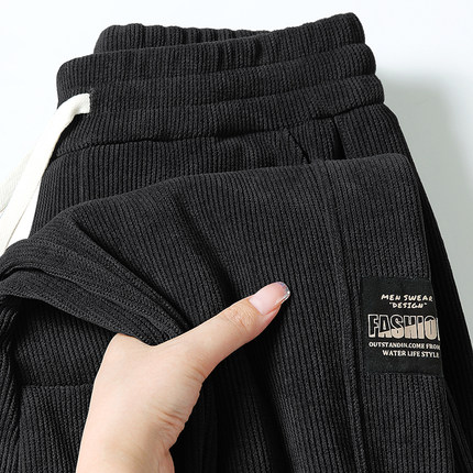 秋冬季休闲裤男加绒加厚外穿收口束脚工装灯芯绒长裤男生哈伦裤子