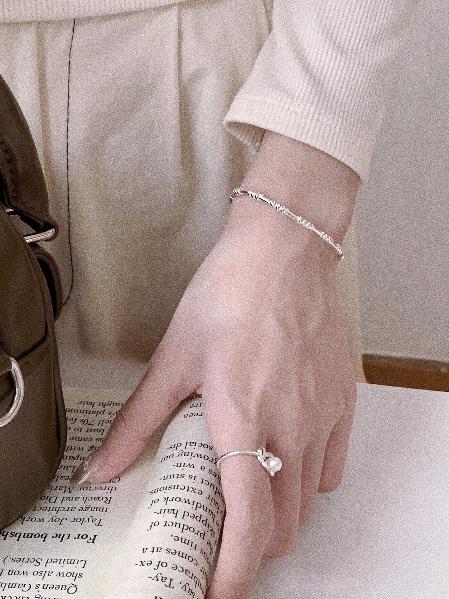 编织麻花手镯银开口轻奢手工饰品