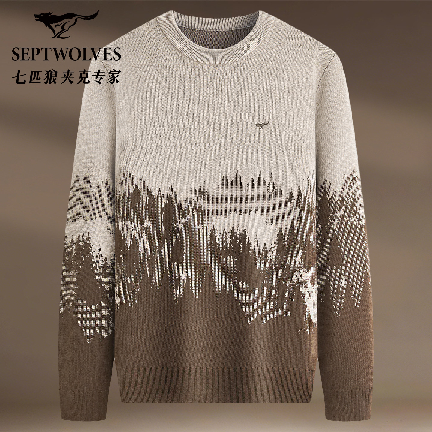 七匹狼男装羊毛提花厚款圆领毛衣