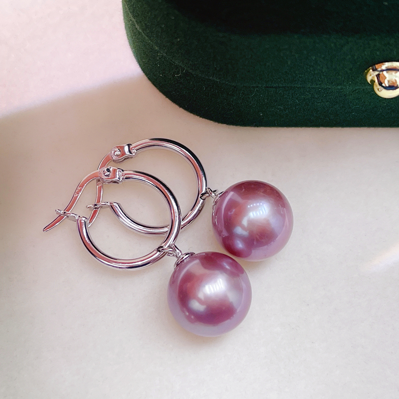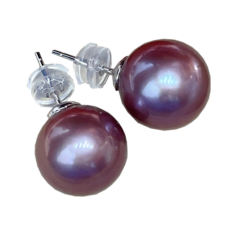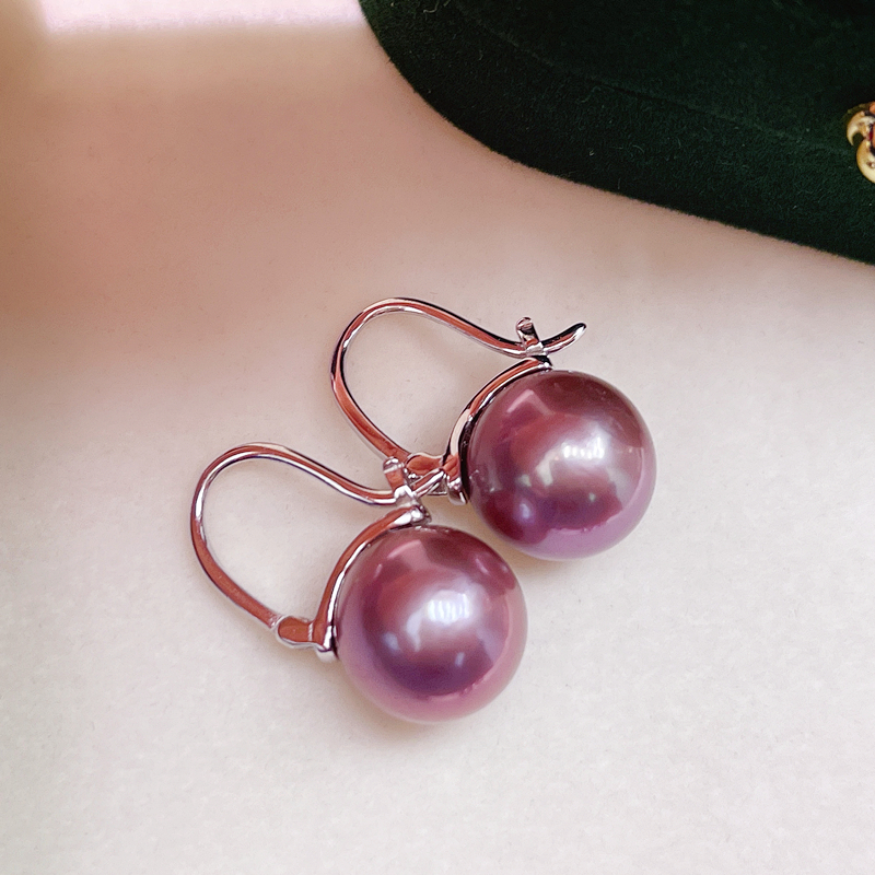 正圆粉紫色天然淡水珍珠耳钉耳环