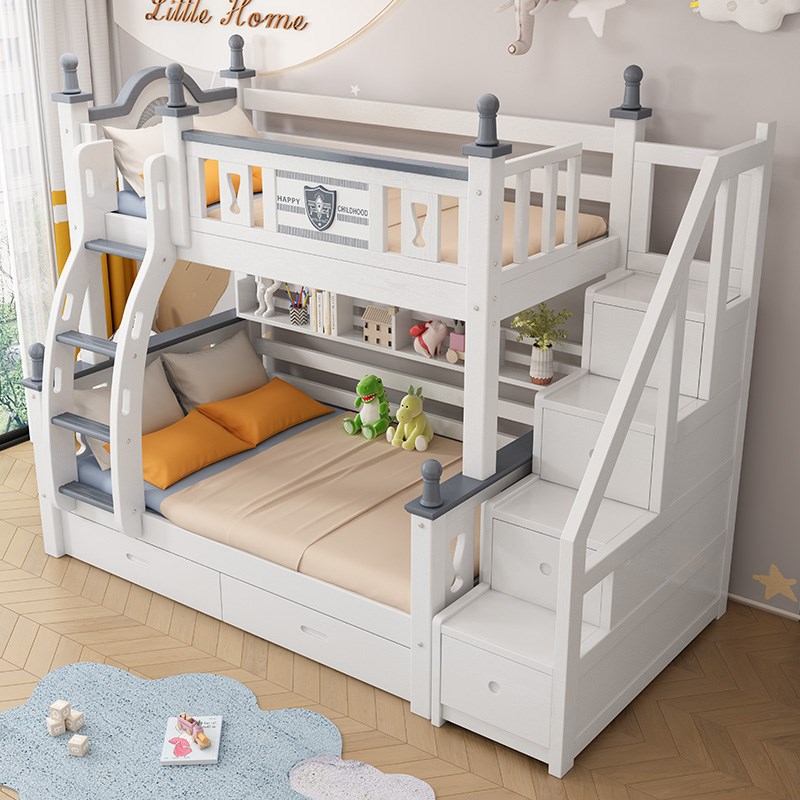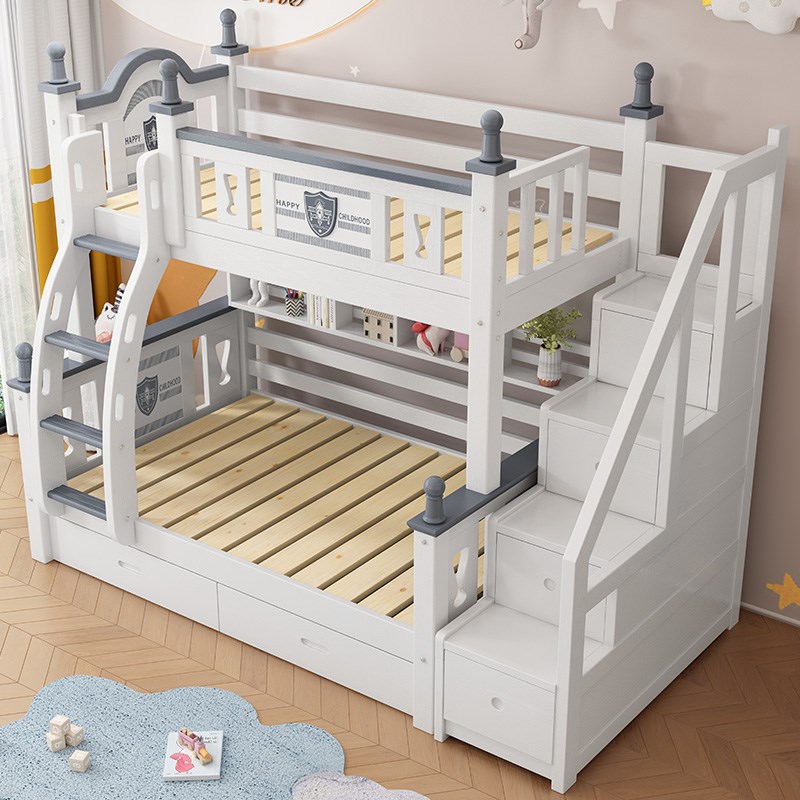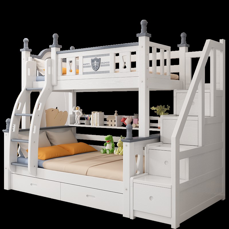 全实木子母床实木儿童床男孩现代简约交错式上下床平行双层高低床