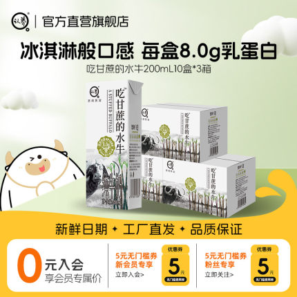 认养吃甘蔗的水牛奶200ml*10盒*3箱儿童纯牛奶新鲜水牛乳早餐牛奶