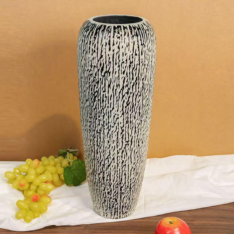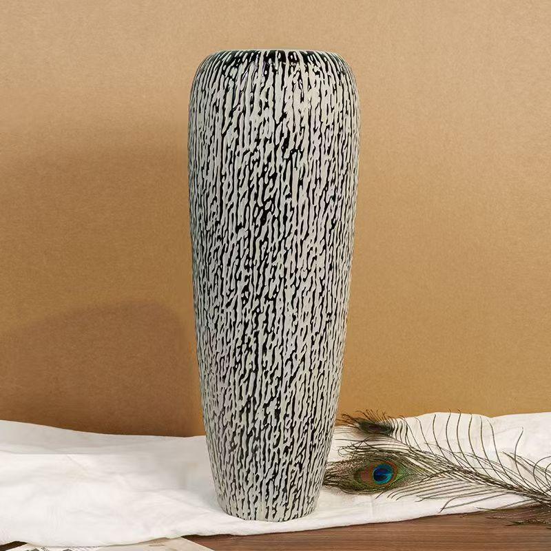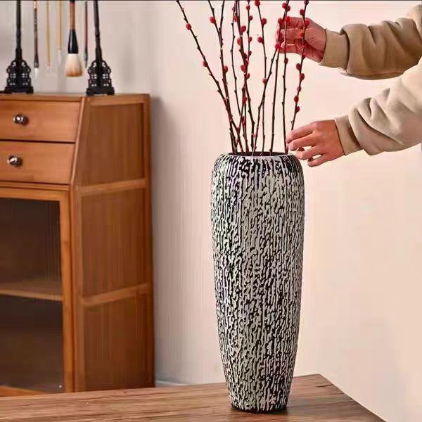 创意简约新中式落地树皮纹路花瓶家居摆件客厅龙柳雪柳花器现代