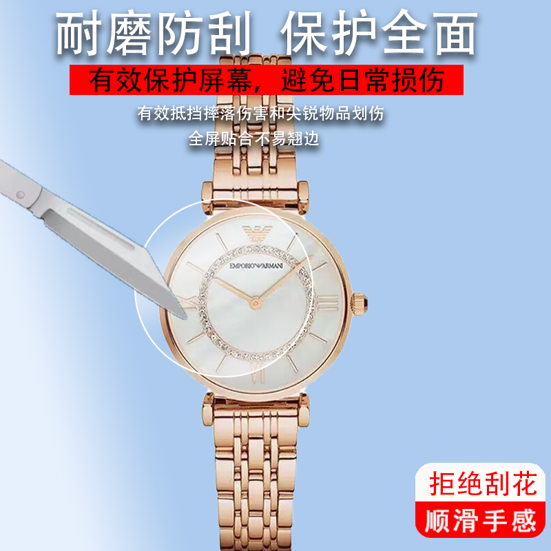 适用于阿玛尼 AR1907手 表钢化膜阿玛尼摩天轮手表贴膜女款满天星腕表 AR1907-12屏幕膜保护膜圆形镜片玻璃膜