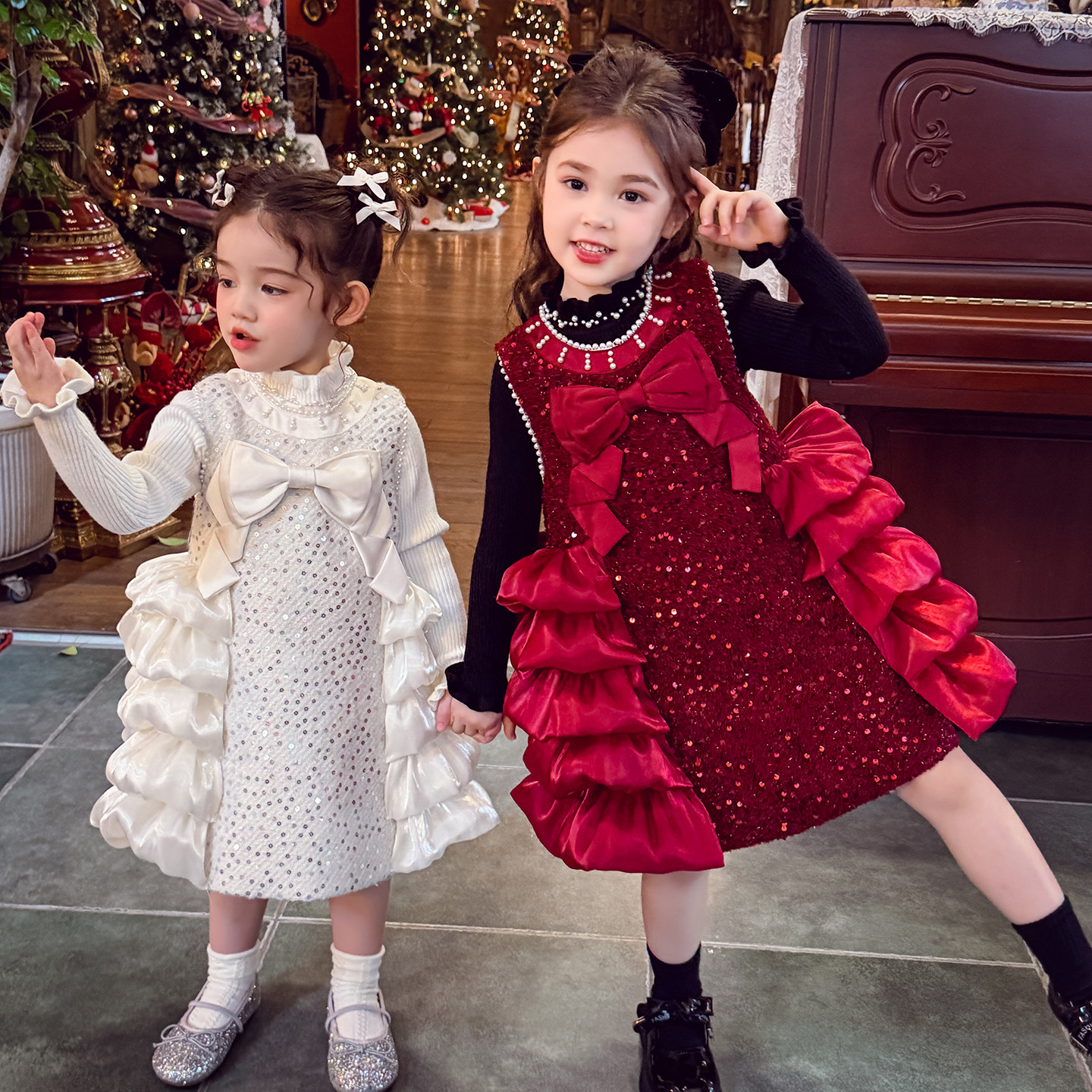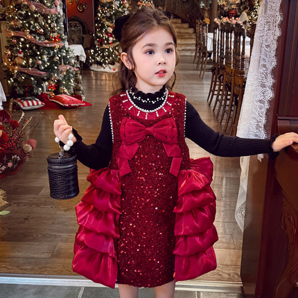 米米哈罗女童公主裙冬装2025新款女孩小香风连衣裙儿童新年礼服裙