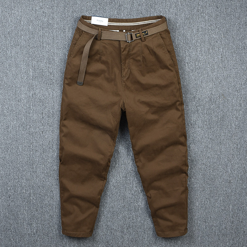 2022秋冬季九分休闲裤宽松直筒裤子潮牌复古水洗做旧咔叽9分裤男