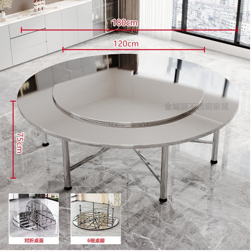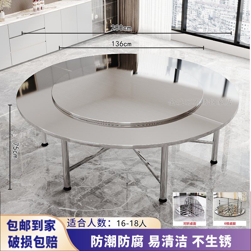 特厚304不锈钢大圆桌转盘桌子圆桌圆凳家用商用户外吃饭饭桌餐桌