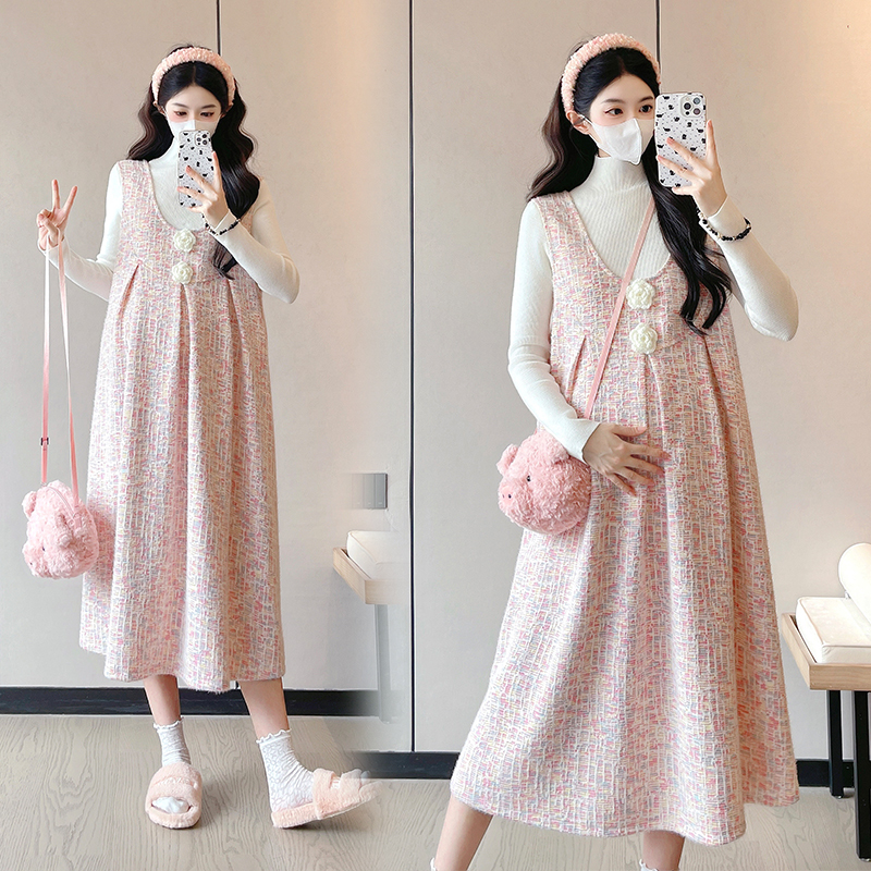 秋冬季新款遮肉显瘦时尚靓丽孕妇大码背心裙套装