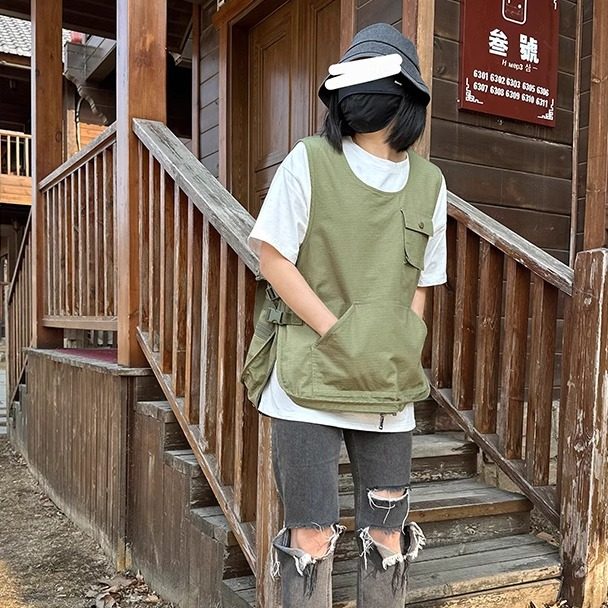 围裙美式户外工装背心马甲男女同款坎肩钓鱼咖啡师围裙可定制logo