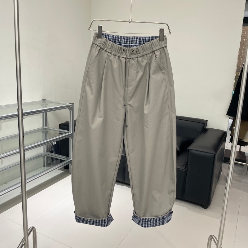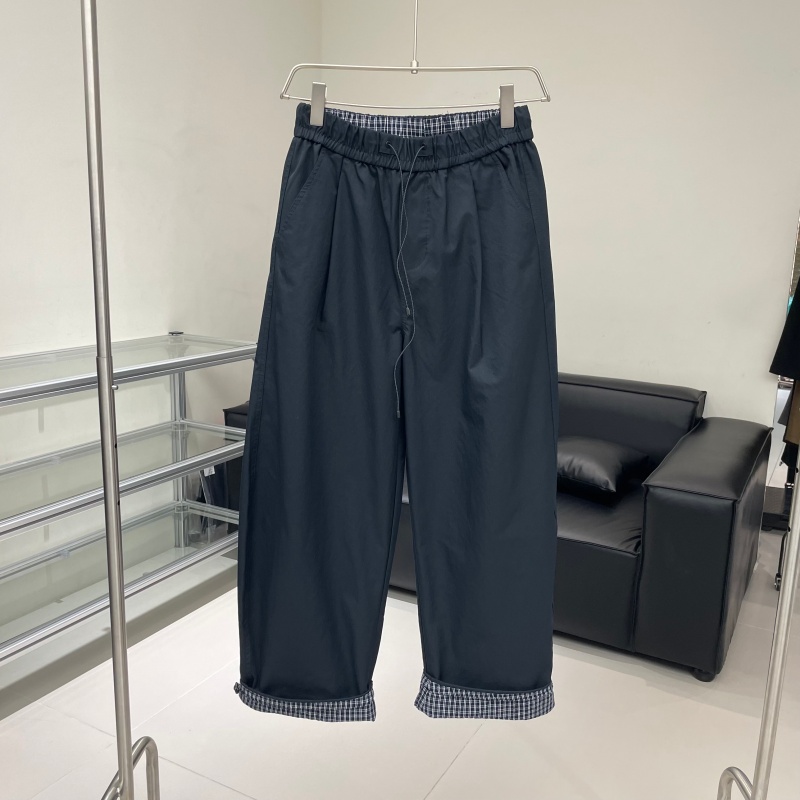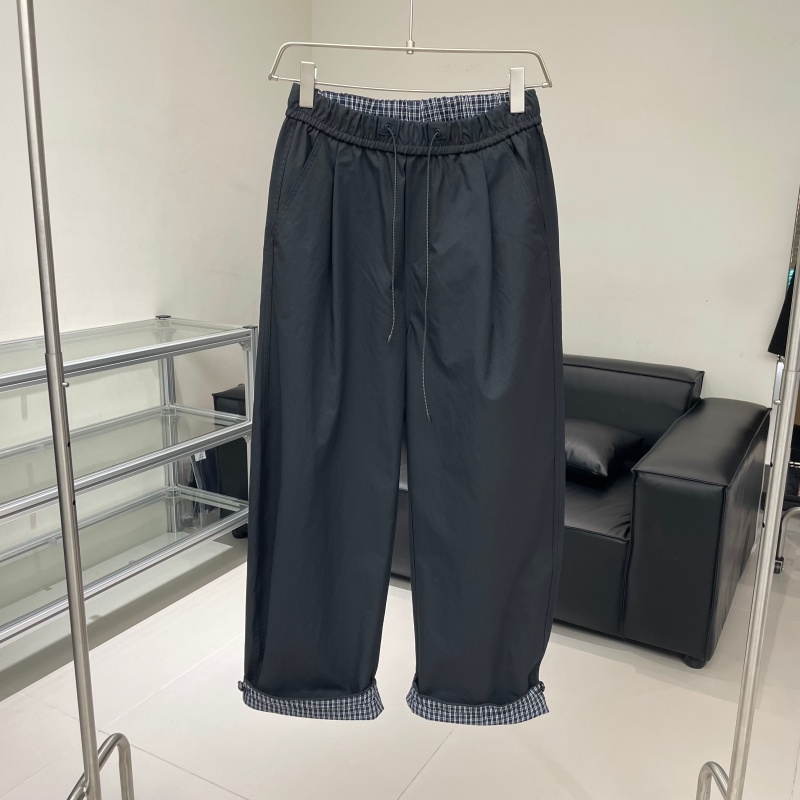 秋季新款格子拼色抽绳潮牌宽松直筒休闲裤男痞帅哈伦裤阔腿弯刀裤