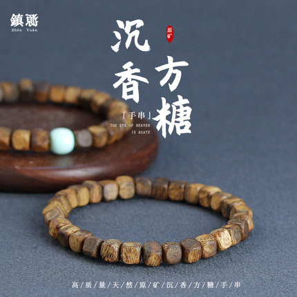 海南沉香手串女款真品莺歌绿奇楠小方糖沉香手串男士木质手链方形