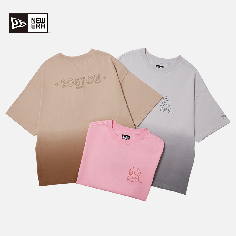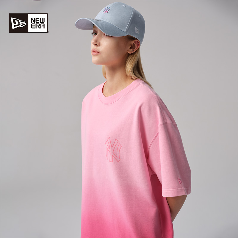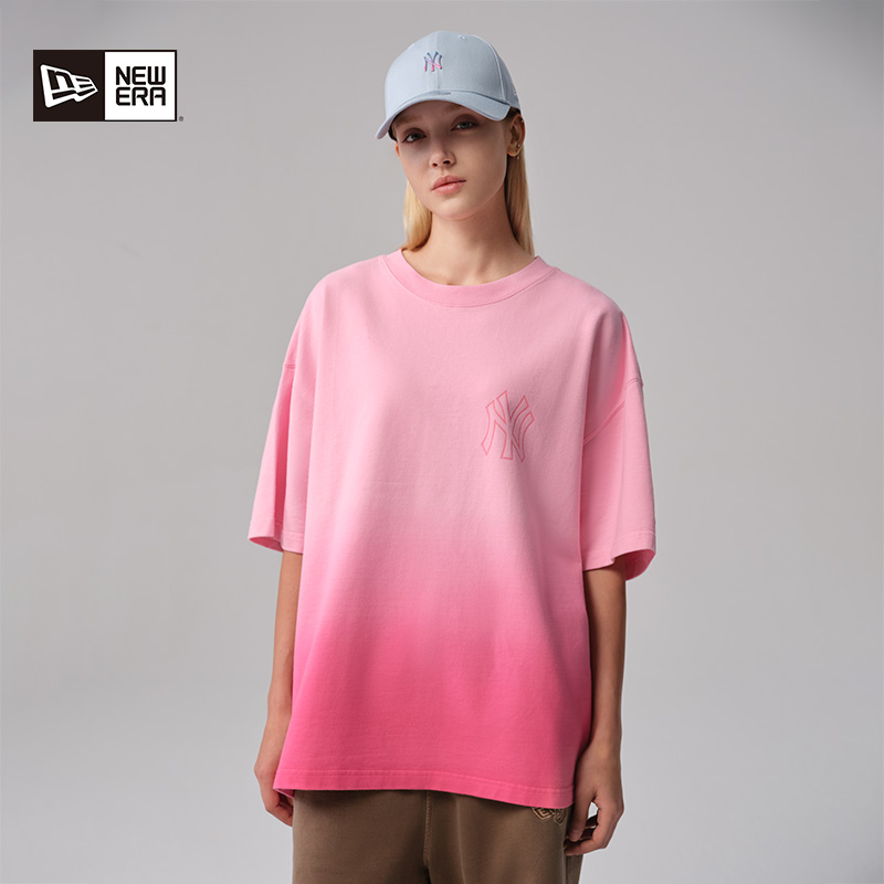 New Era纽亦华秋季新款MLB毕业狂欢情侣NY短袖T恤渐变水洗男女潮